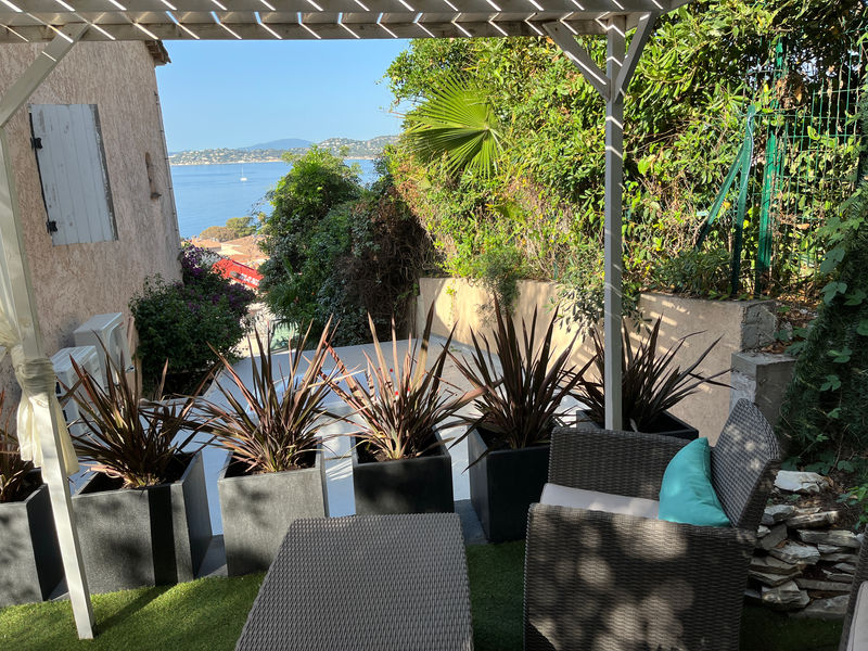 The Corail is on the top floor, with a spectacular view across the bay of St. Tropez. A big dining/living room with a sleeping couch for two, a fully equipped kitchen with dishwasher, a separate room with double bed, big bathroom and a nice big garden. This Appartment is airconditioned and available as of 900 EUR per week, depending on the time of year.